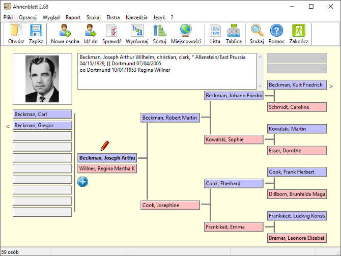 bezpłatny program do tworzenia drzewa gnealogicznego Ahnenblatt, który posiada