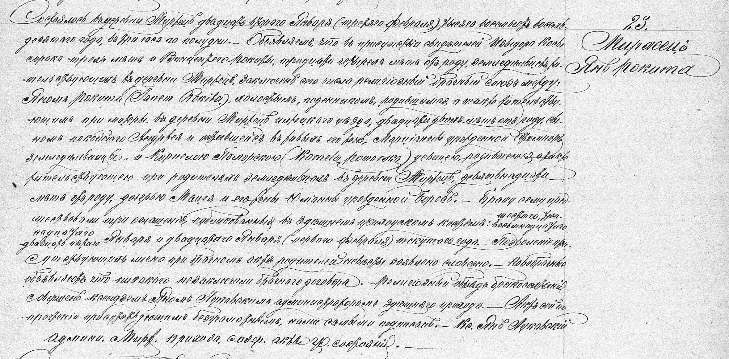Ślub Jana Rokity z Kornelią Pomorską (∞ 3.02,1880 PK Mirzec, wpis 23)
