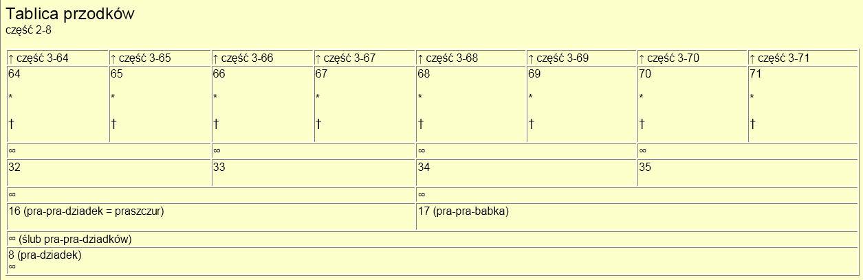 Uwaga: Dla potomków w linii żeńskiej zmieni się numeracja w/w przodków