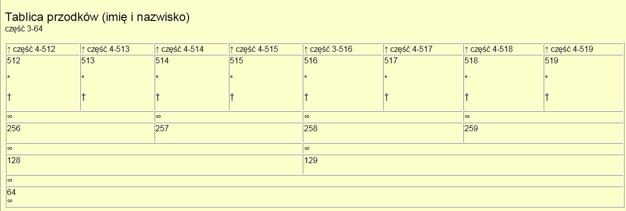 VIII generacja: 256 przodków (numery od 256 do 511)