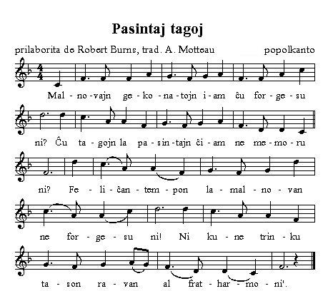 | Pasintaj tagoj Muziko: skota popola melodio Esperantaj vortoj: Achille Motteau |