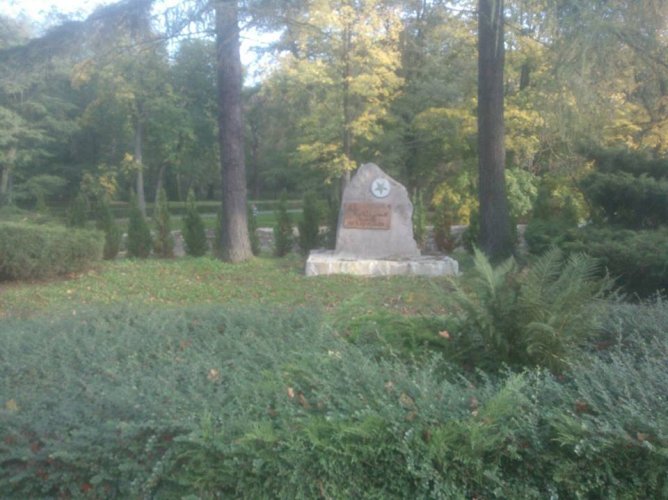 ustawiono w roku 1948 kamień pamiątkowy, który w ukryciu