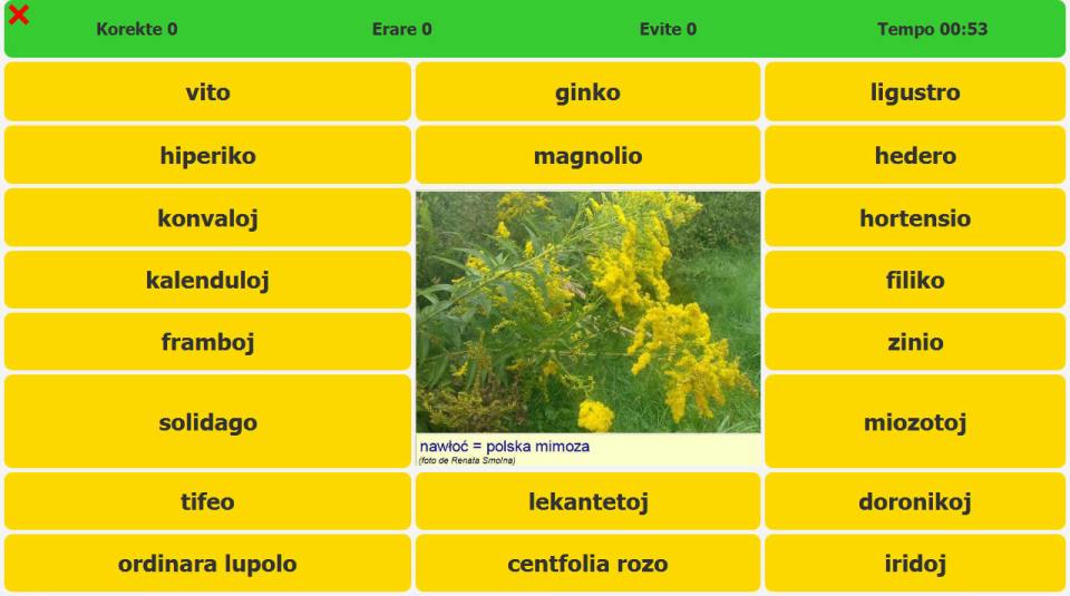 W grach wystepują zdjęcia wykonane przez członków klubu podczas naszych spacerów. Przedstawiamy plansze wszystkich gier oraz zdjęcia z polskimi lub esperanckimi podpisami. Zachęcamy do nauki poprawnego rozpoznawania roślin i ich nazw w różnych językach.. Nazwy esperanckie są przeważnie podobne do nazw łacińskich.